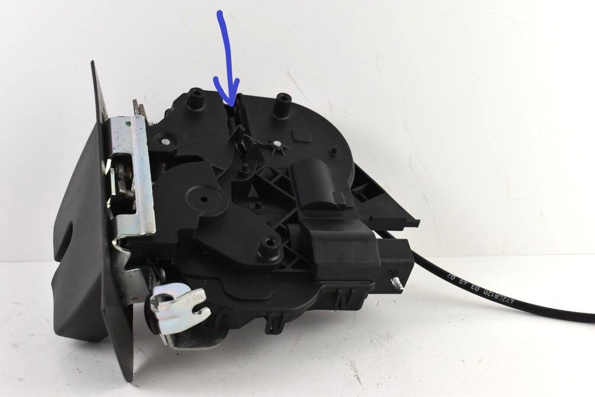 The tailgate/lift gate was latched and would not open. There may be several reasons for this but in my case although the servos made all the right sounds the tailgate remained latched. Turns out, a plastic housing stop on the cable for the latch actuator had broken and the cable had become unhooked from the latch mechanism. Unlike later models, there is no slot in the latch that can be used to release it.