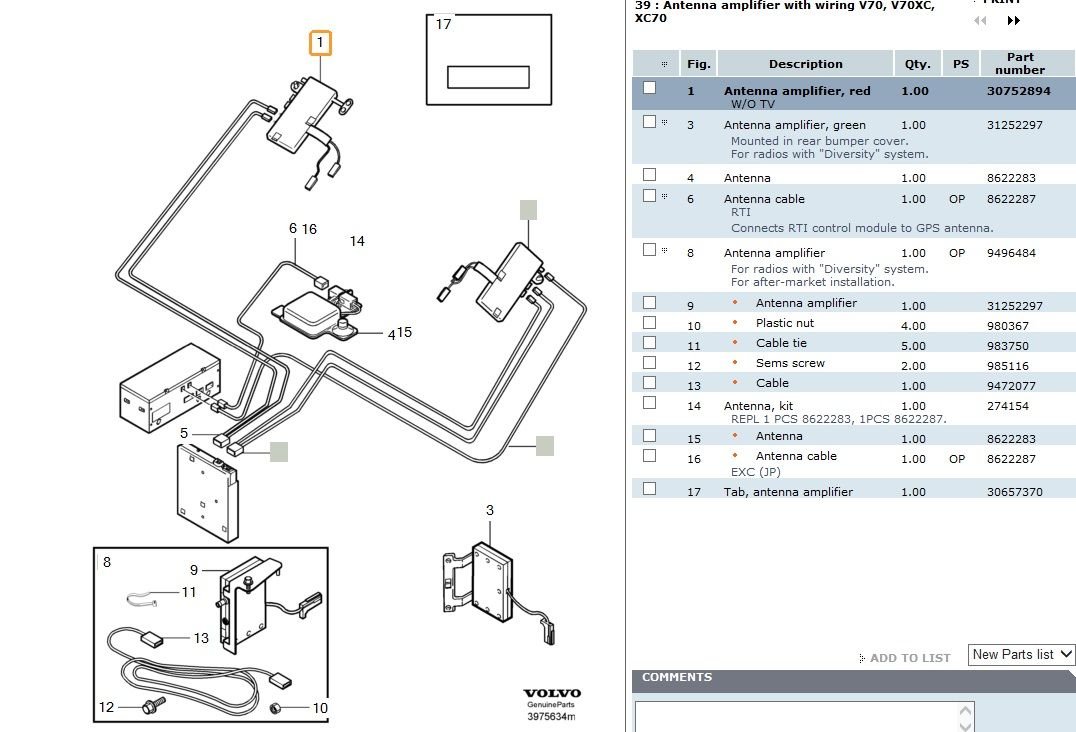 2005 XC70. Speakers are in fine shape, CDs play fine. But radio does not, only getting static. No stations get recognized either, when I press seek ( >>| ), it just keeps searching forever. When it does land on a frequency, only static. Huge bummer, because I use a FM bluetooth transmitter to play music/podcasts from my phone.