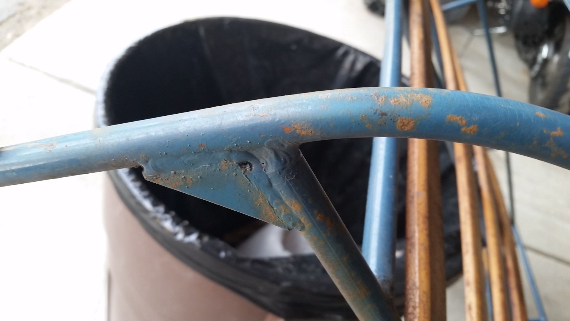 There is surface rust but no pitting. No cracked welds. It will need sanding and paint and varnish.