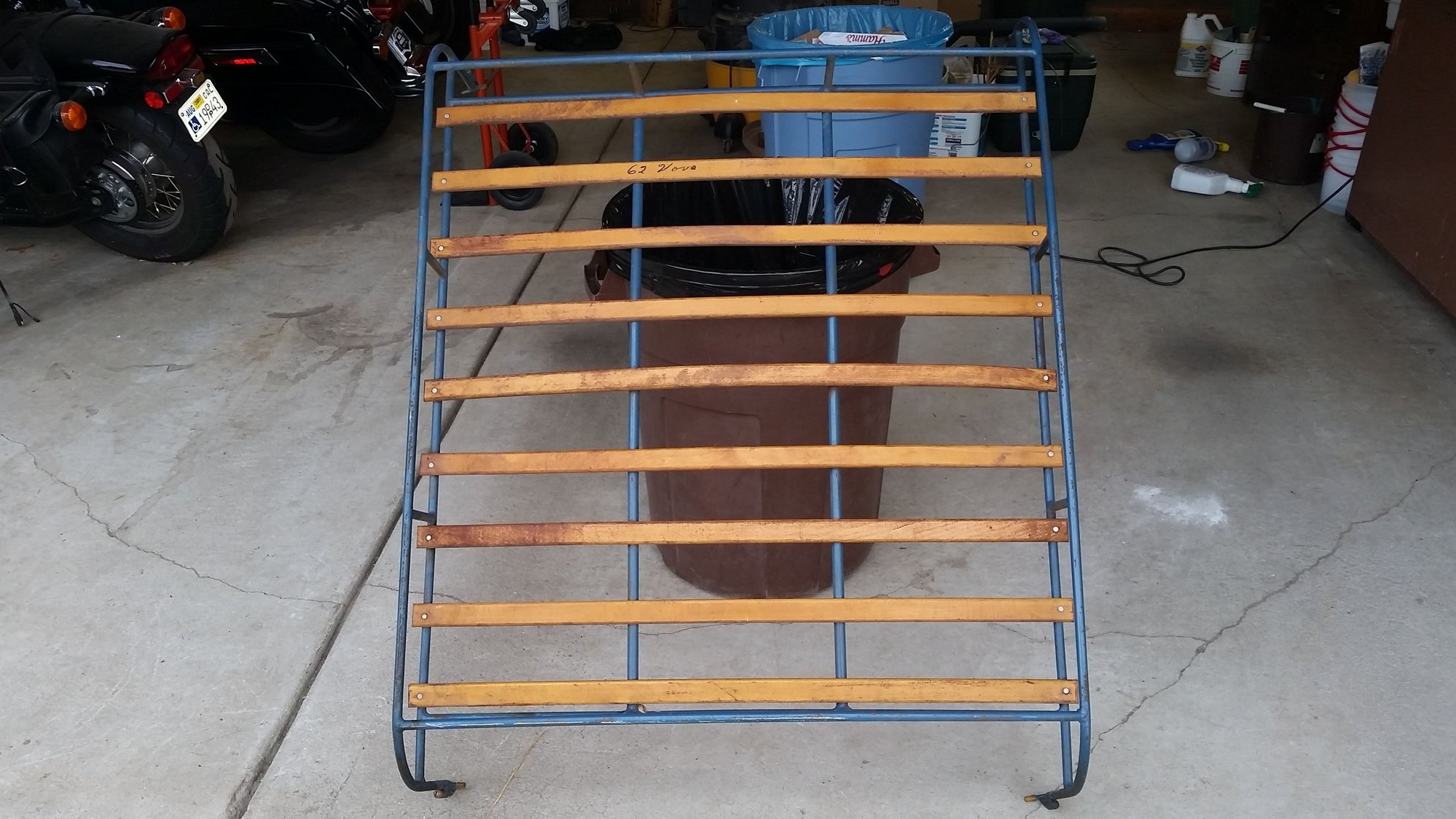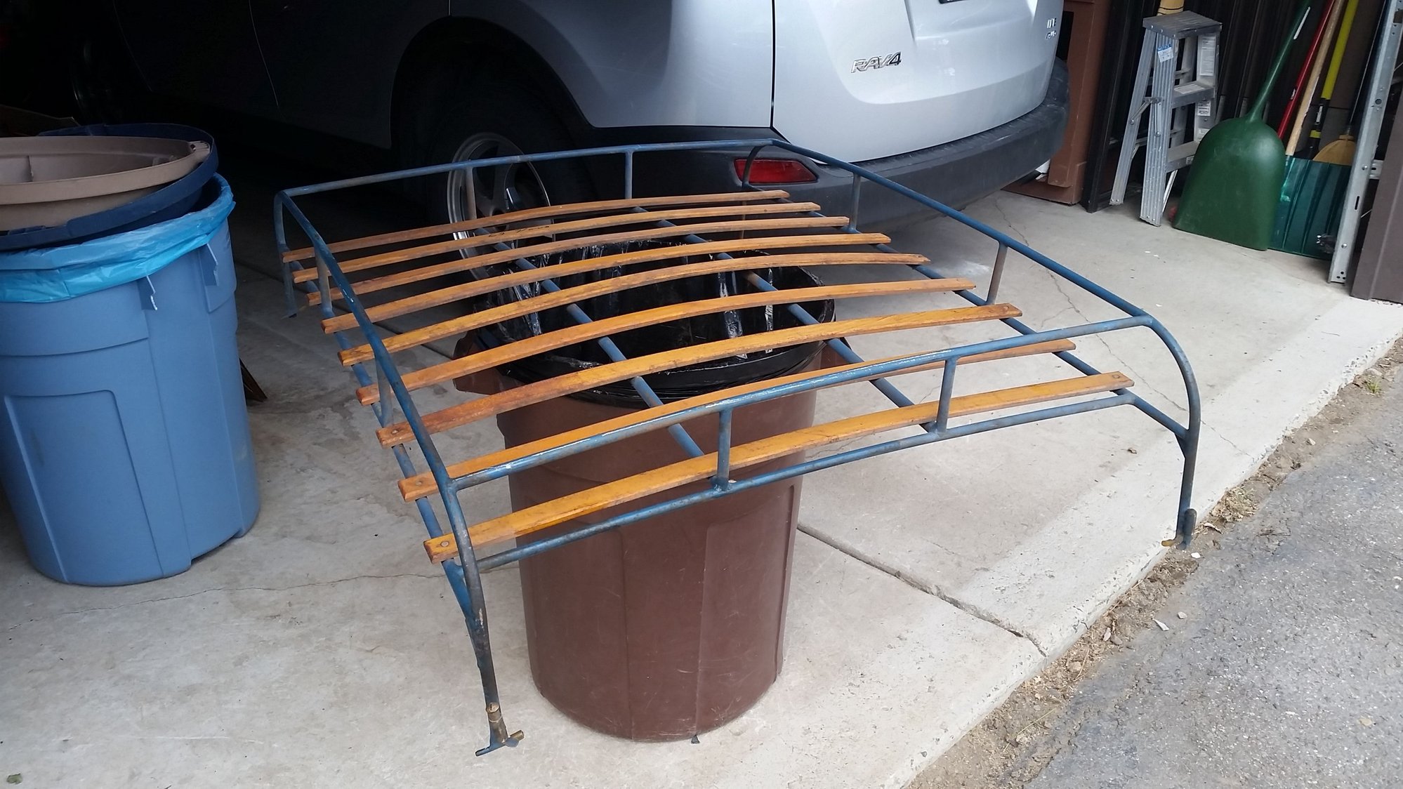 I've found a PV544 roof rack hanging in my father's garage. I know he had a 1960 and then a '64, which he probably sold around 1975. It's been hanging there a LONG time.
