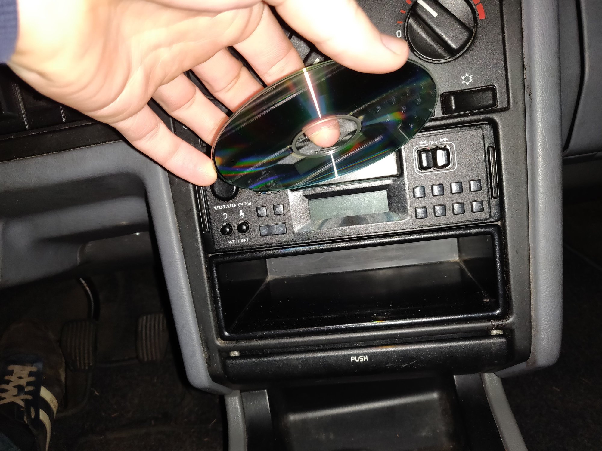 So I have a CR-708 radio in my 93 Volvo 850 GLT. On the back it has a 13-pin CD connection port. However, there is no CD button on the radio! How can I change the radio to CD player? I bought a bluetooth adapter with the CD connector on it to try and play music from my phone.