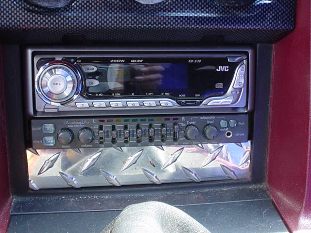 Kind of hard to see but look for the grill in the door panel. I think they are 5 inch behind there. Attachment 24749 my box Attachment 24750 Attachment 24751 Amps Attachment 24752 Radio and EQ That is most of it but not done yet Need a 1000 watt amp yet. |