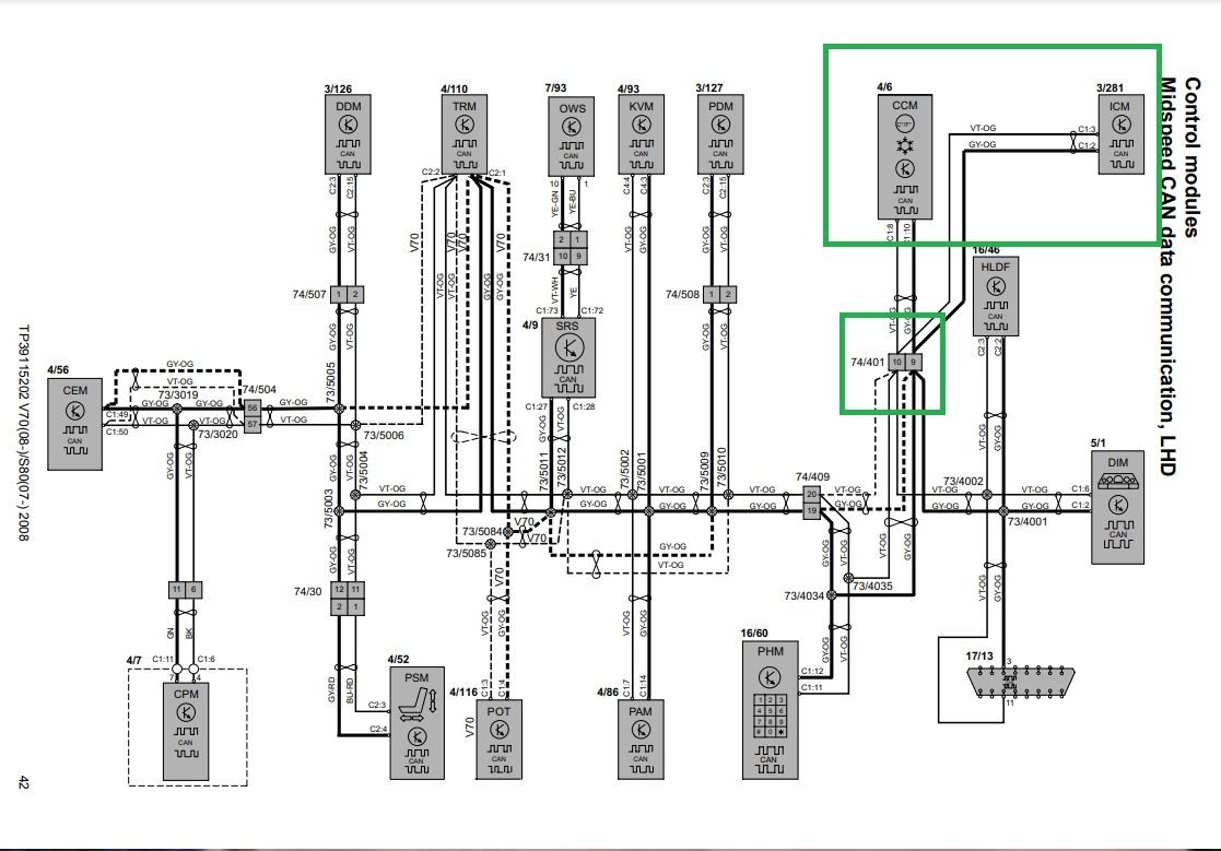 For instance - if there's a connection problem in the can bus network - the CCM (climate) and ICM (infotainment ) modules are on their own "leg" of the network, and can be disconnected without causing problems in the network. Those systems won't work if there's a connection problem in the network wires. (below is just the can network portion, the rest of the wiring is on other pages) Wiring diagrams can be found at volvodiag.com