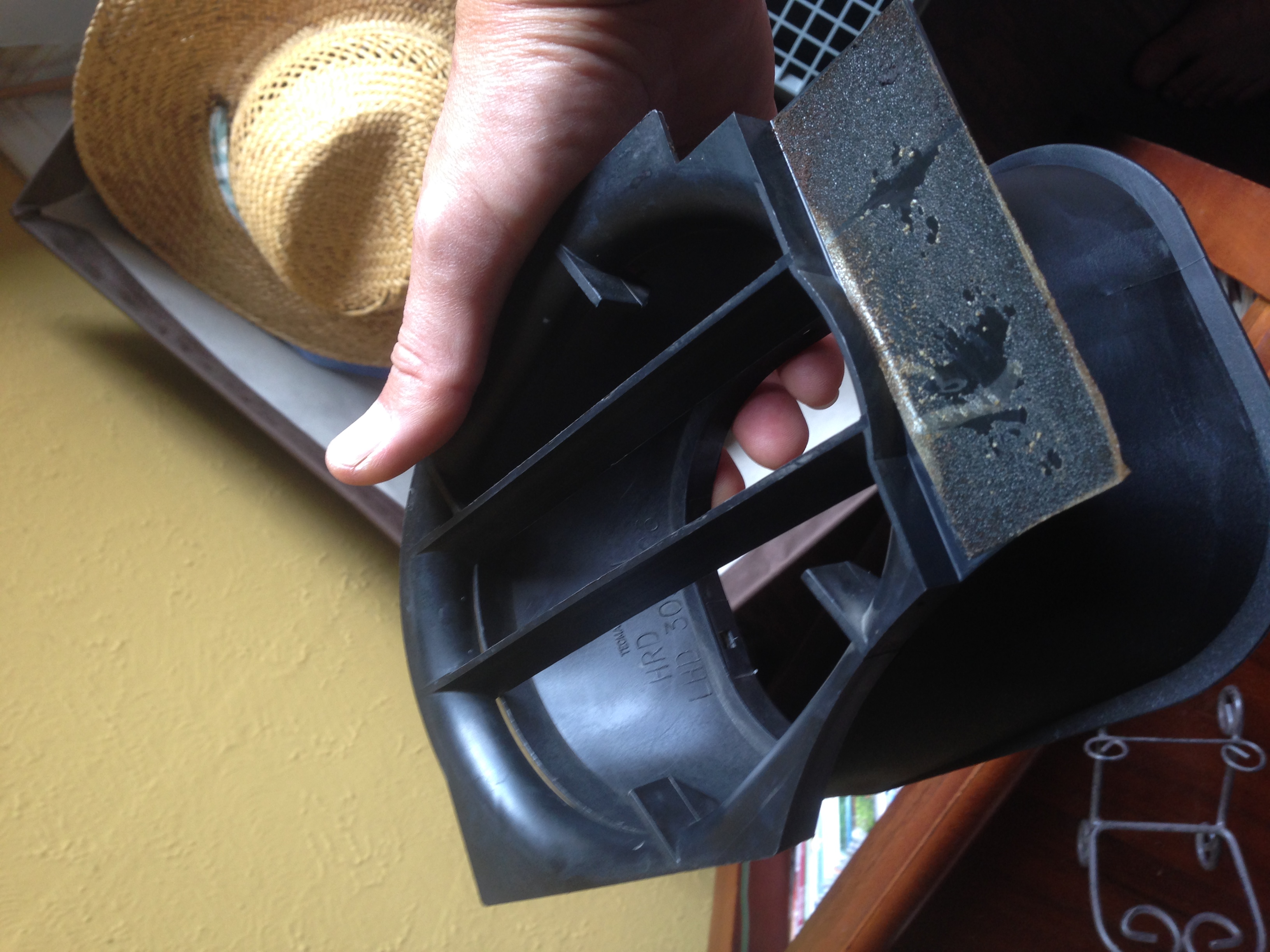 This part fell out of the passenger side under-dash. I believe attached to intake for recirculation of cabin air. Noticed a great deal of sticky foam residue on side of apparent attachment. Maybe two sided tape? Can anyone tell me what the purpose is and if need be where I might find one. All my searches with P/N