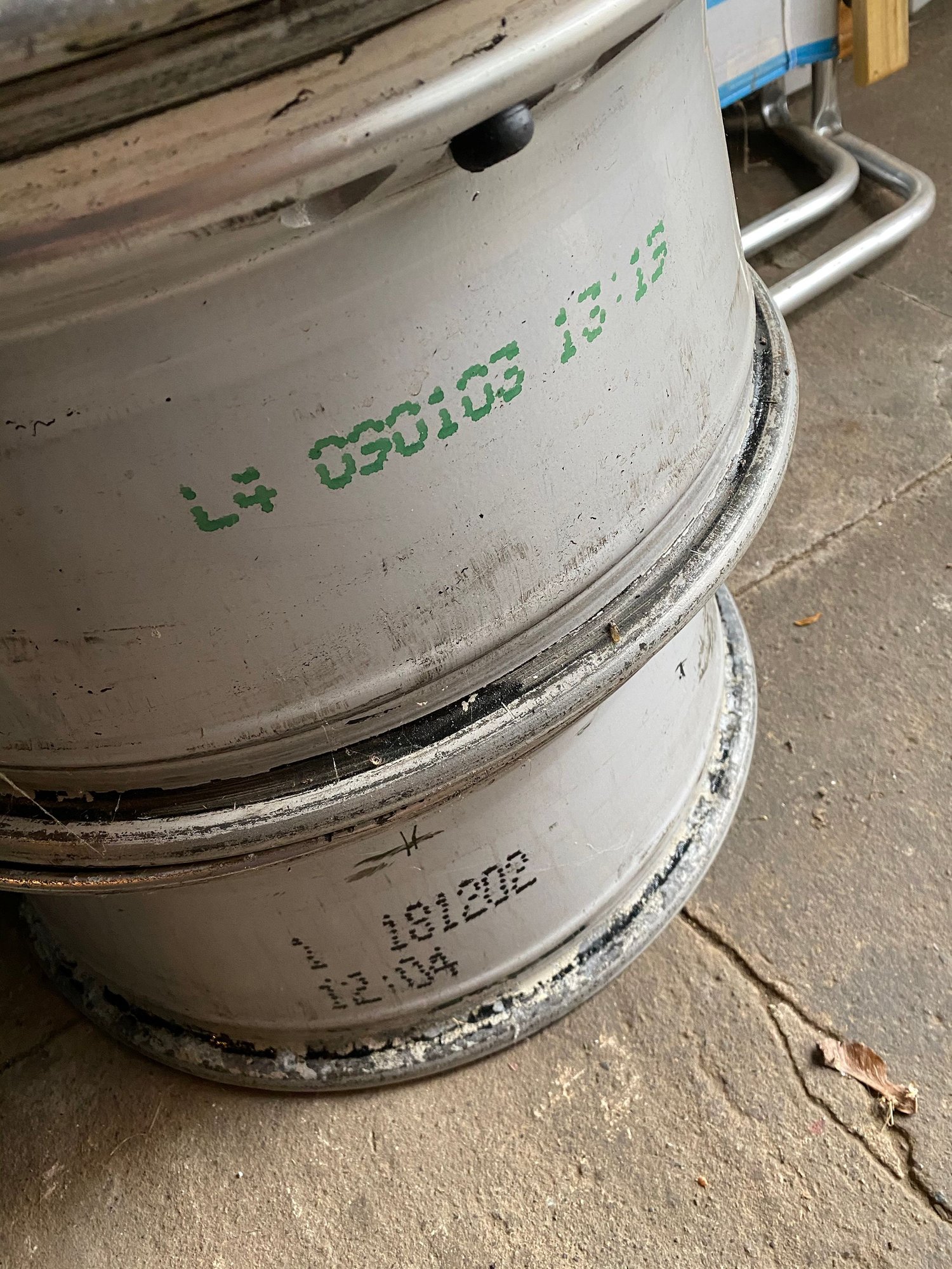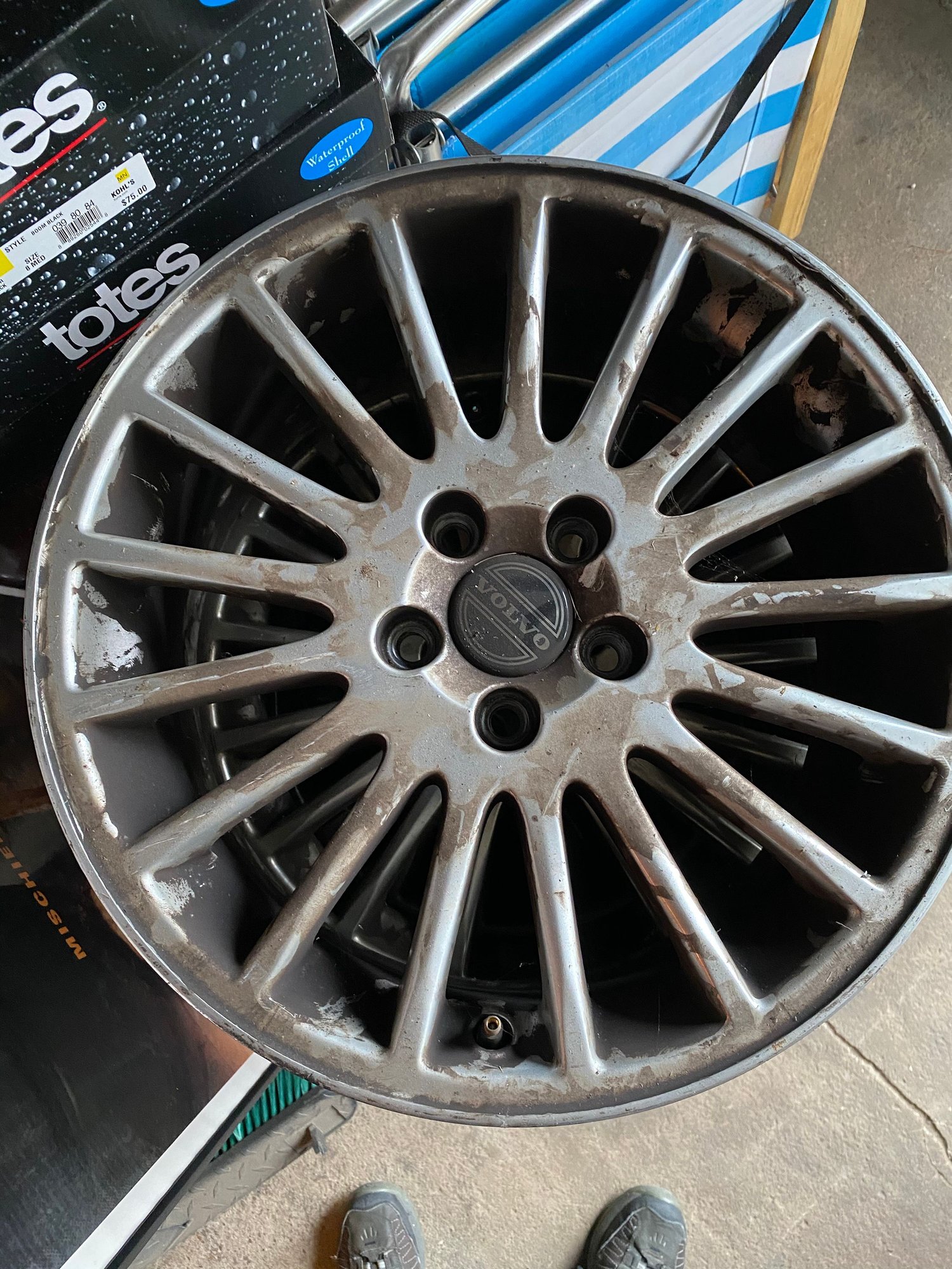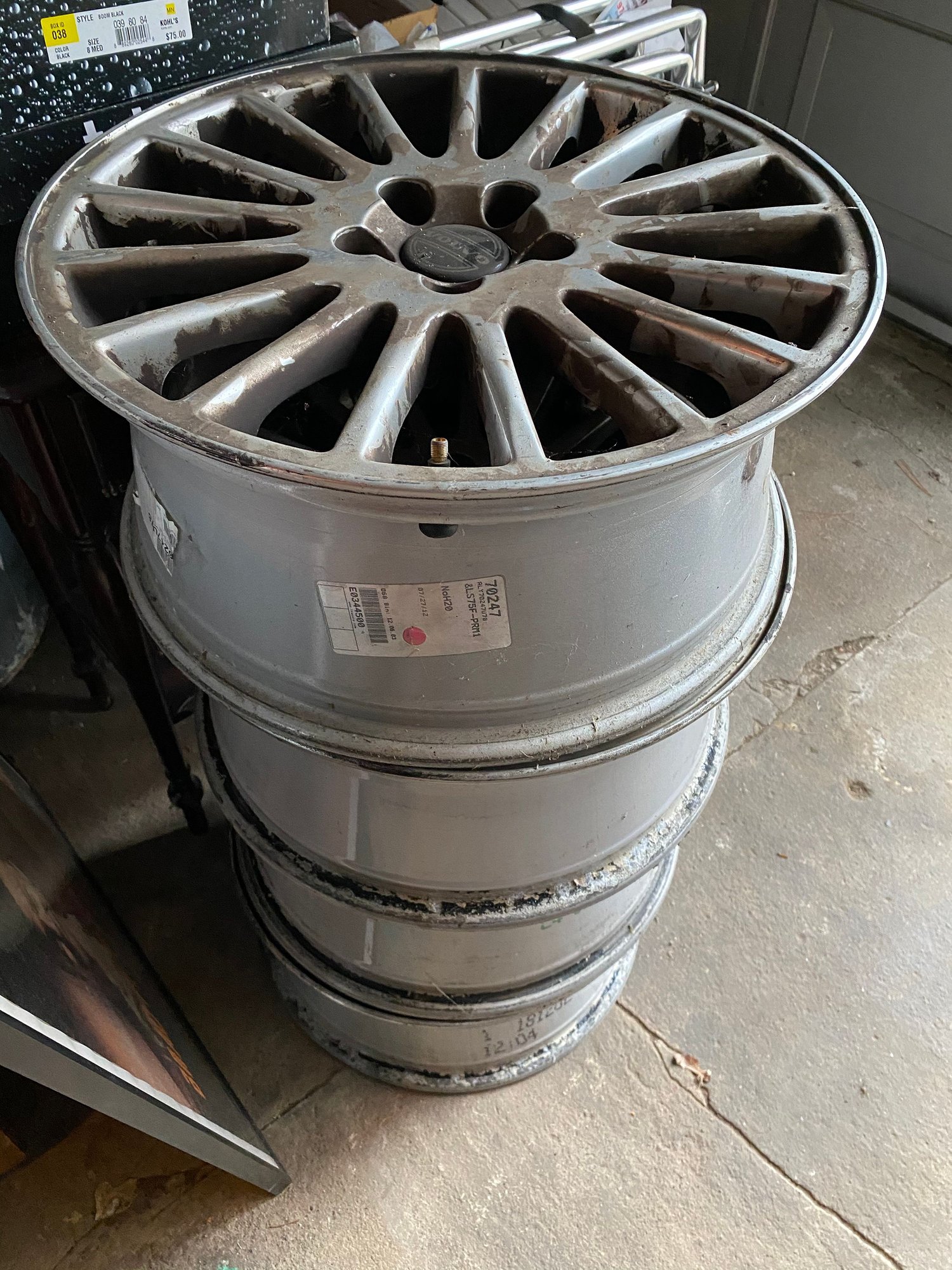 Four (4) "Tethys" aluminum wheels taken off of a 2003 Volvo S60.