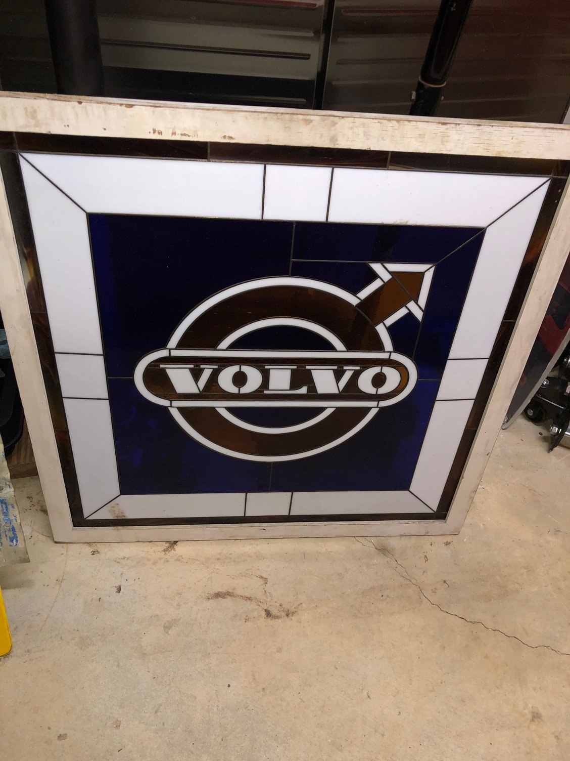 I have for sale a stained glass windows with the Volvo logo on it. It would look great in a man cave, garage, or where ever. I can't find one that has been sold anywhere. I got it from a Volvo dealership that I did some work for.