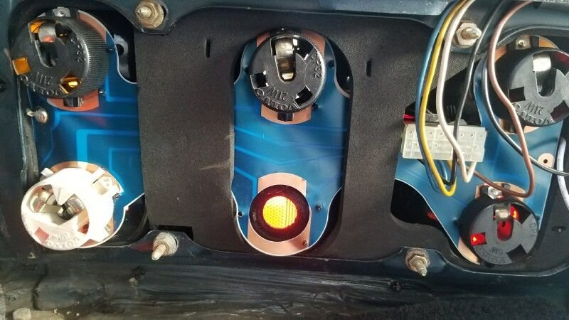 I have a 1986 240 GL... The tail lights on both sides have only 5 (of the 6) lights in it. The bottom middle had no bulb nor socket... and unlike the other 5.. .the cut out is a pure circle (see photos below) - without any tabs for a socket to fit in it. All of the photos I have seen online - show all six lights on both sides have those tab cuts out on all the lights. The repair manual I have all show 6 lights.