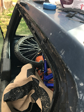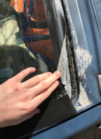 Since I didn't have any help (thanks COVID-19!!!), I took 2 pieces of 12" long heavy duty duct tape and taped them to the window. I would use these as guide wires to lift the window back into place once it had the adhesive on there. I put the adhesive on with a caulk gun (3M adhesive in the link above but the $18 one, not the $30 fast-set one), and then lifted the window with the tape. Once placed in the tailgate frame, I used the duct tape to guide the window up/down or left/right as needed. I pressed on it for a few minutes to seal. Since I didn't have any window clamps, I took more duct tape and taped the window to the body as best I could to create some pressure. Another option I thought of later was to install the window while the tailgate was up, using gravity to make a seal. However, since I was alone this wasn't as easy.