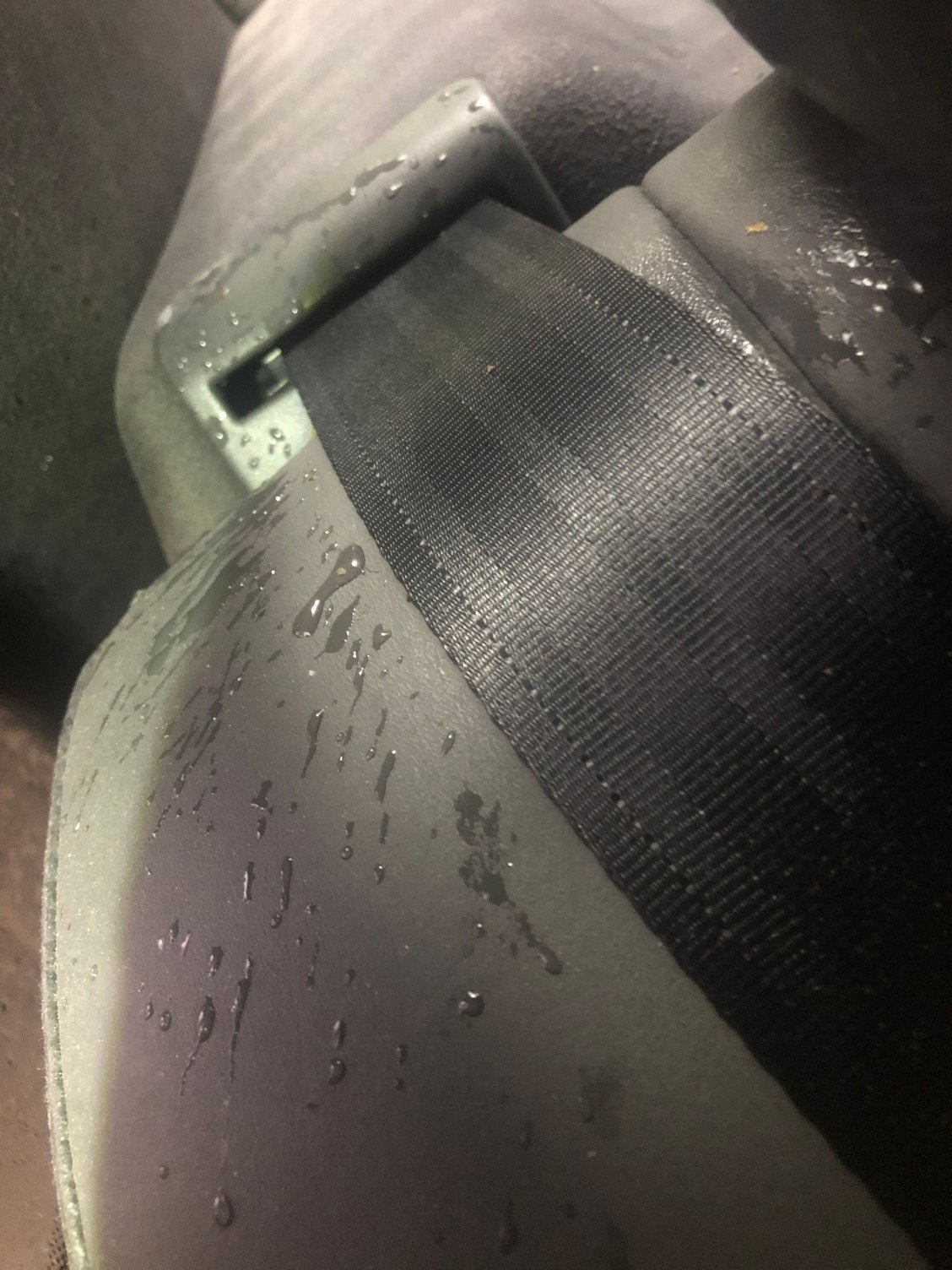 Roof leaking down behind the backseat on the passenger side near the corner of bw