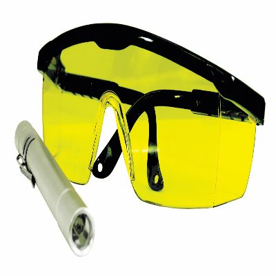 You should use freon with a UV dye. Let the system run for a time and then check over the fittings and hoses with a black light to see if you can find an area that "glows". You will need a light source and the glasses help to increase the contrast. The pair sell for around fifteen bucks at most auto parts stores.