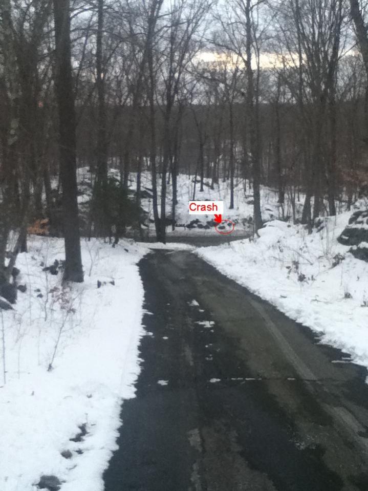 Funny, I had snow chains in the trunk which I was planning to mount on the way up. We have used this driveway for many years on snow, ice, rain, whatever, with all kinds of vehicles, bald and new tires, but never on runflats. Some cars, much less stable than Volvo, never had this slide. Going up, yes, we slide down, rotate and nose down.