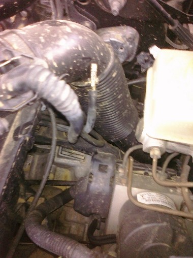 I have the same thing. It's the vacuum tube that comes off the bottom of the big tube. If you feel under the big tube you will feel a hole. It looks like someone tried to fix it with a cheap connector they got from an auto parts store. I picked up one of those connectors a few weeks ago and have not gotten around to trying to fix mine.