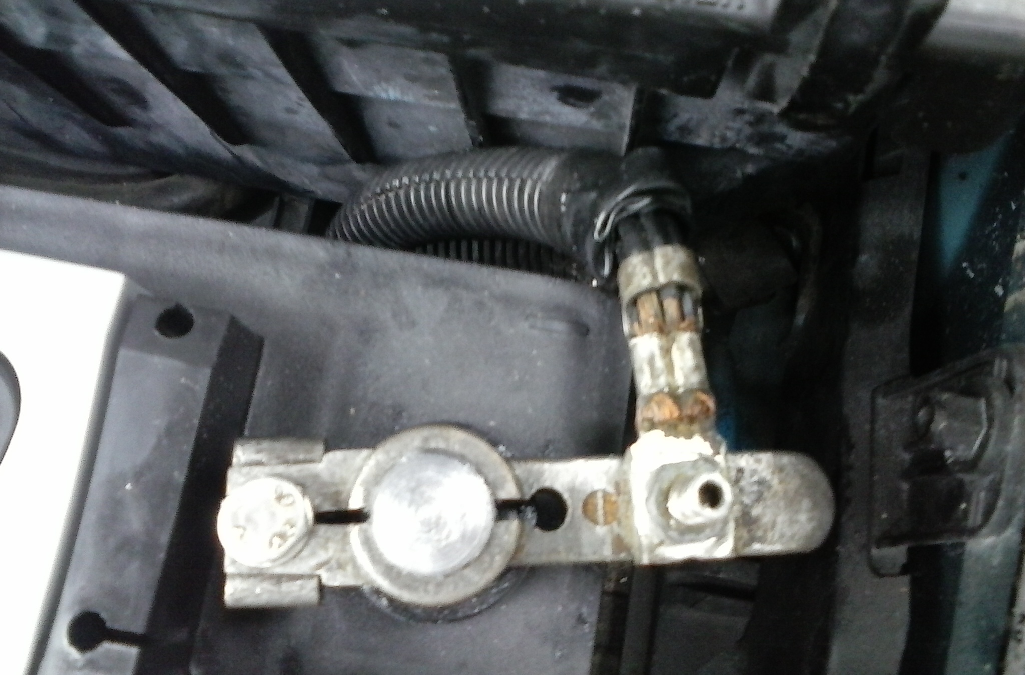 The negative terminal also looks to be in bad shape but will bo too short when cut that replacing the entire negative cable looks to be the most complete solution.