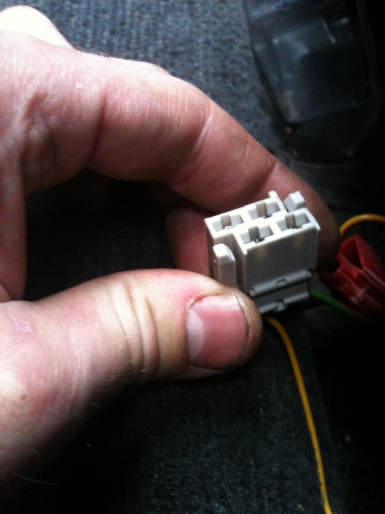 Notice that each position is numbered (the numbers are small)...Locate position 1 in the connector (it has a big hole for the big crimp connectors. Crimp one of the big connectors onto a 2mm² wire. This is the permanent power feed. Insert the connector inside.