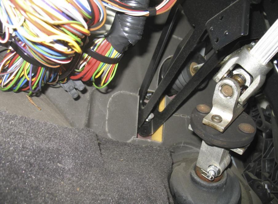 See it? That three-pronged thingy just behind the wires. In the engine bay, it pops out down low between the master cylinder and the strut tower.