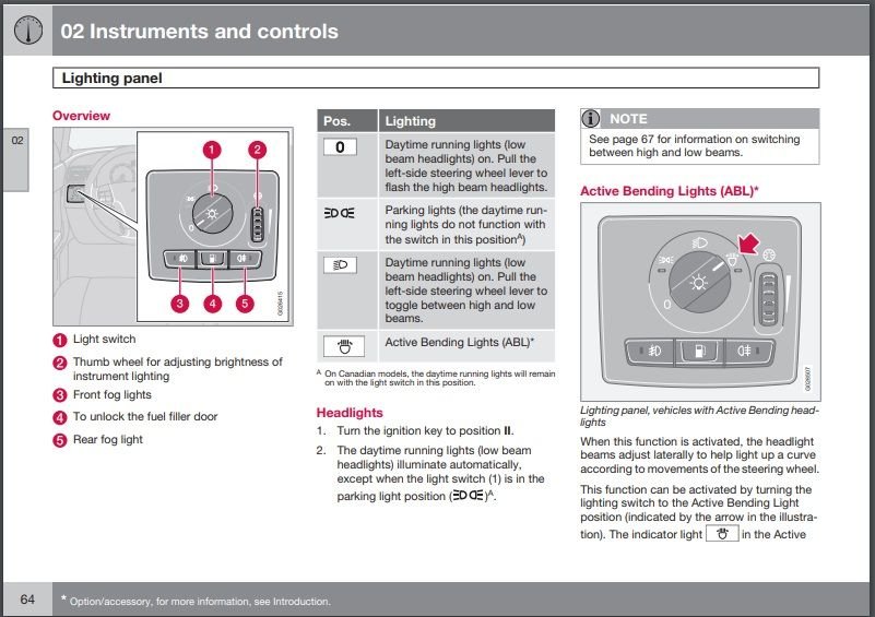 In Cars with Active Bending Lights the switch looks like below. And headlights in Canada are required to be on all the time also - there is no off switch. Many Volvos in the US can have the daytime running lamps turned off (the low beams on most cars pre 2015) - so the lights are off in the off position (when the car is running). This is done using a command with VIDA. I don't see that option in the CEM for a 2012 c30.