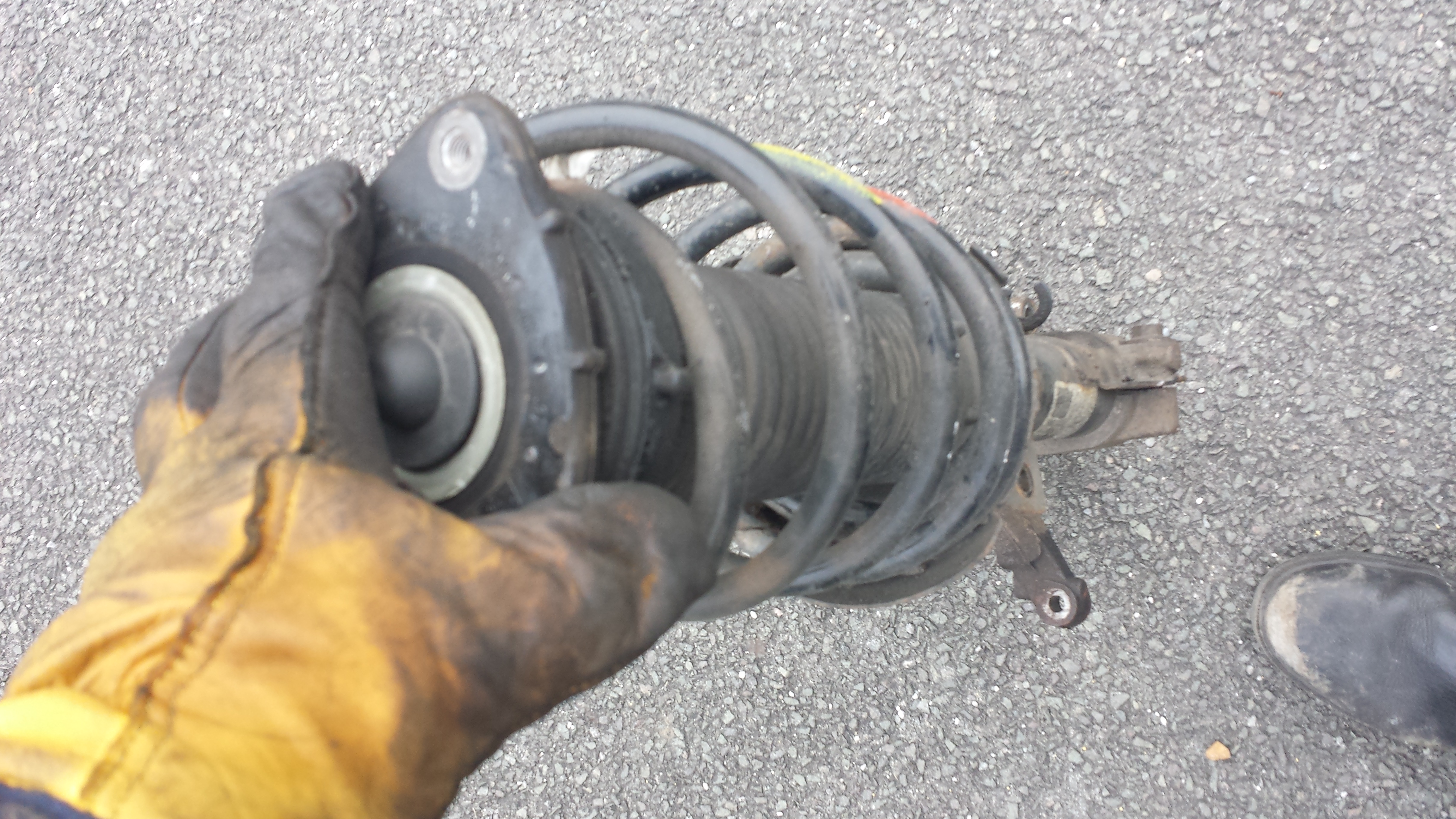 remove the bolt still holding the top strut and slide out the complete unit quite heavy.