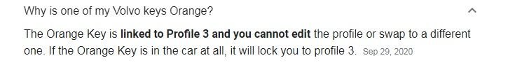 I bought my '21 XC60 T8 new and it came w/3 keys. One black master, one orange (I thought thought was just additional key) and a small black key that's waterproof w/no button controls. Can take pinned to a bathing suit into the water. One could presume all the '21 model T8's came same way but ...