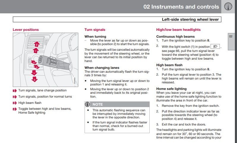We have a 2005 model and when parked and one switches lights on , pulling on the stalk mentioned swithes between low and high perhaps with never models with HID lights its different the vwhicle must be started before ?