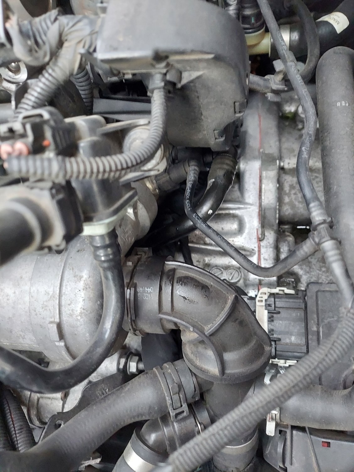 Here's another pic. The hose in question is the larger one with the white spot on it behind the small hose that crosses behind the little hose.