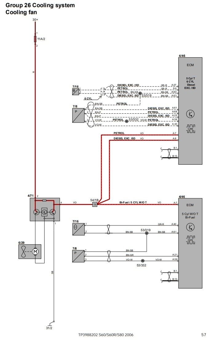 There is no relay. The fan uses 3 wires. There is 12 volts coming from fuse a2, and a "turn on" signal from the Engine control unit and a ground. In the attached diagram 6/29 is the fan motor, 4/71 is the controller. The fan controller is built onto the fan and Volvo does not sell it by itself. So either the controller is bad and not turning the fan on - or the ecm is not sending the signal. The fan should come on with ac compressor use also if the pressures are high enough and it's not too cold outside and the engine is not overheating.