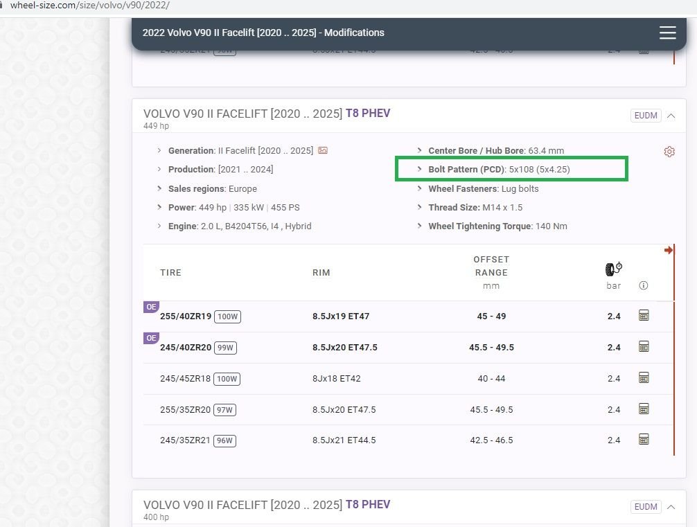 Following a minor accident, I must change a rim on my V90 T8. I noticed many values on the current rims, but one of them I miss: current rims are Borbet BLX 8.5x20 ETA 45 72.5 5x???. I read a value LX108 on the rim: does this mean that the center distance is 5x108mm? Who can confirm the center distance for a V90? I can provide pictures if needed...