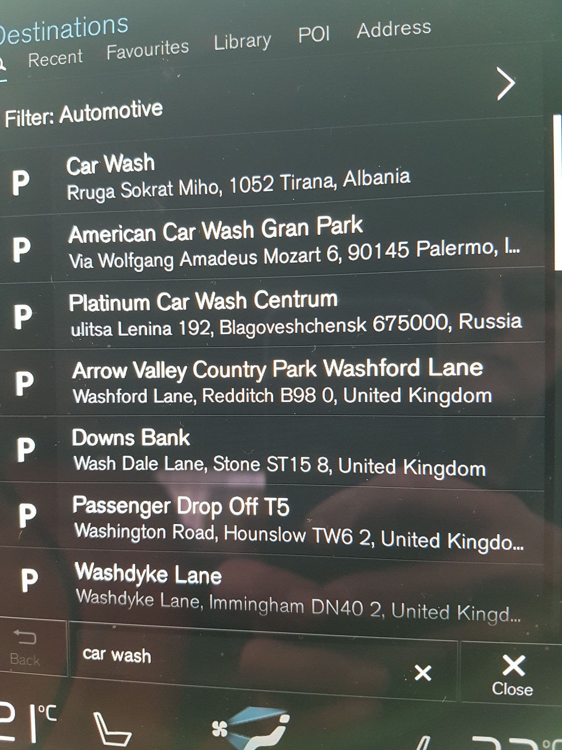Sitting in a petrol station in Rugby, Warwickshire I asked the Volvo sat nav for a car wash NEAR ME.