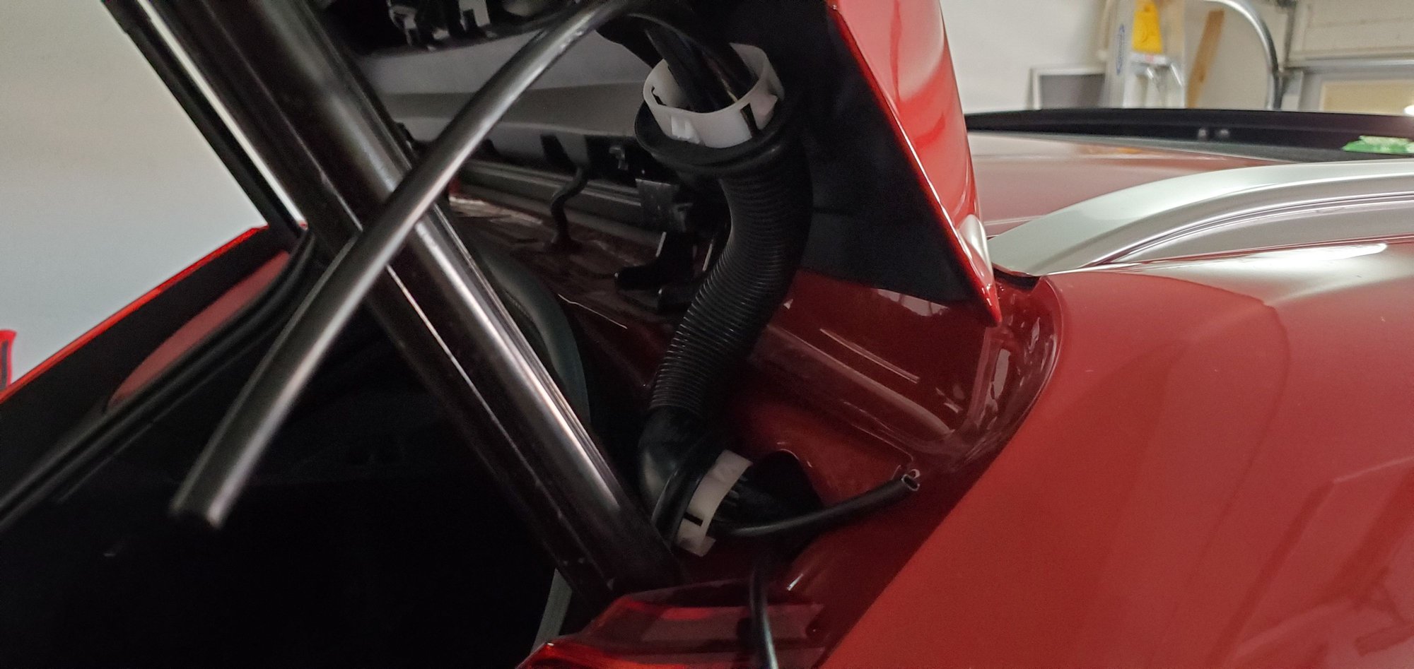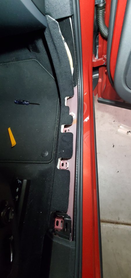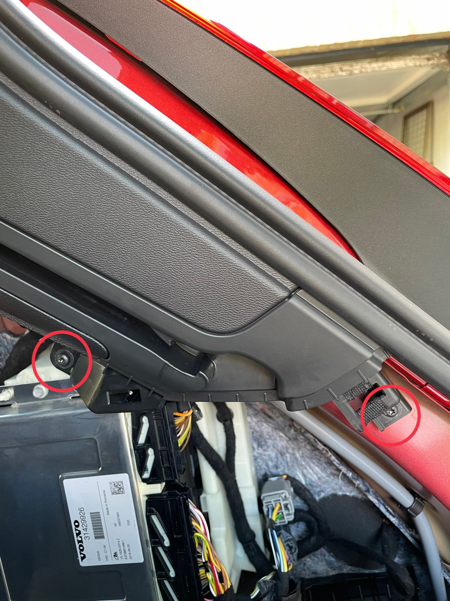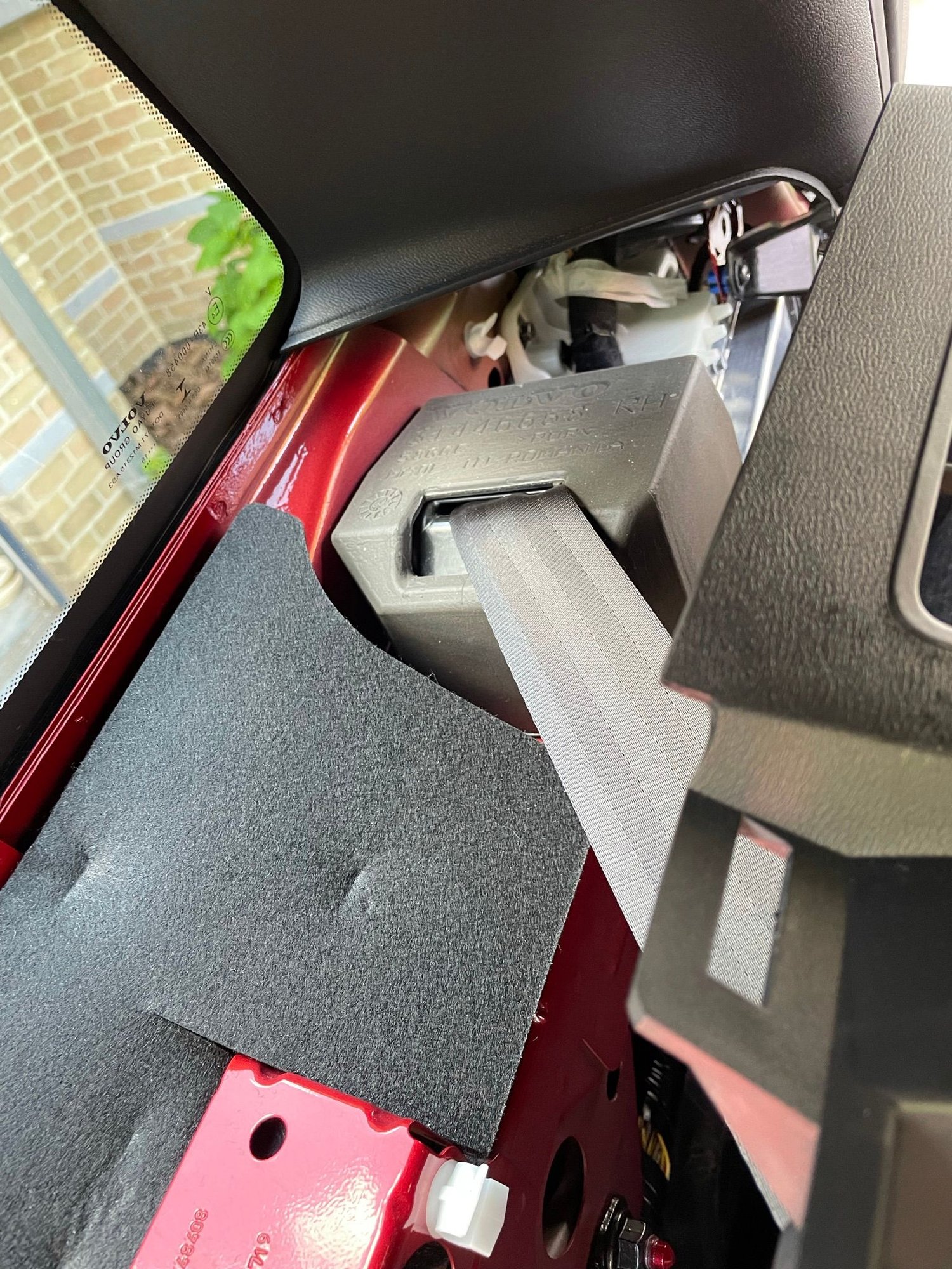 16. Put everything back together while you wait for the rear camera adhesive to cure. Be careful when refitting the A-pillar trim that no wires or cables are trapped under the clips or under the bolt when you tighten it. There is plenty of room away from the airbag.