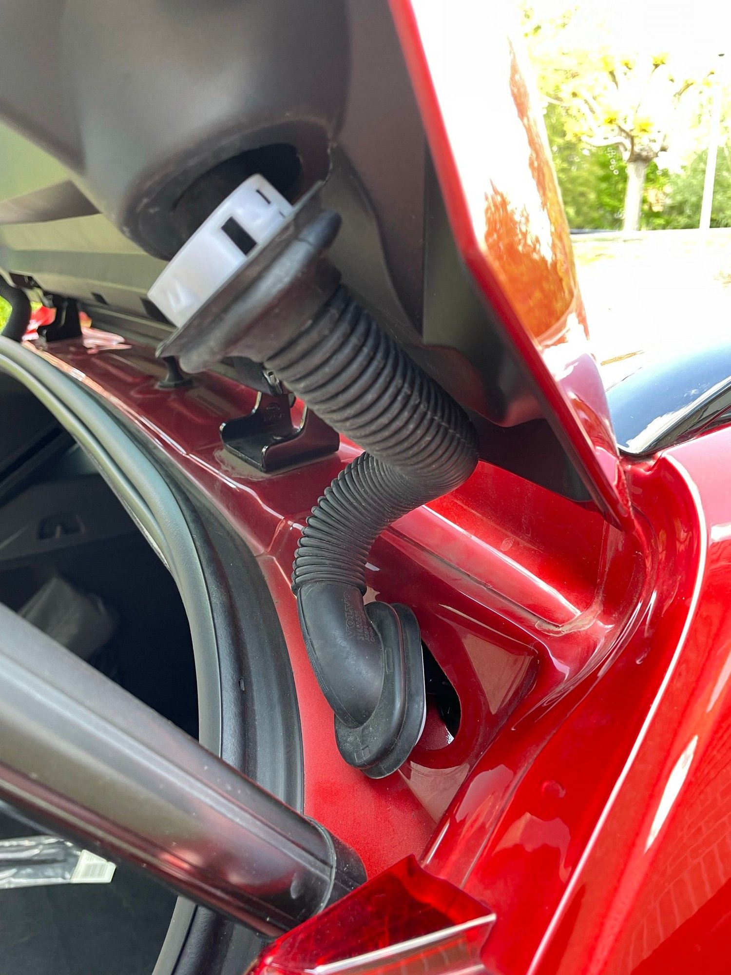 ADDENDUM: In the Arizona heat the adhesive used to attach the rear camera to the plastic trim gave way. I used some countersunk stainless steel M3-05 screws and bolts to better attach the camera mounting plate to the plastic trim. When the Earth spirals into the Sun the last two things to separate will be that mounting plate and that trim. They are now SOLID. I also bought a short (9-inch) mini-USB (female) to right-angled mini-USB (male) extension which uses a much thinner and pliable cable to remove some of the strain on the connector where it attaches to the camera, and a 15mm rubber firewall grommet to tidy-up the hole I butchered through the Volvo trim. Now it is looking much tidier.