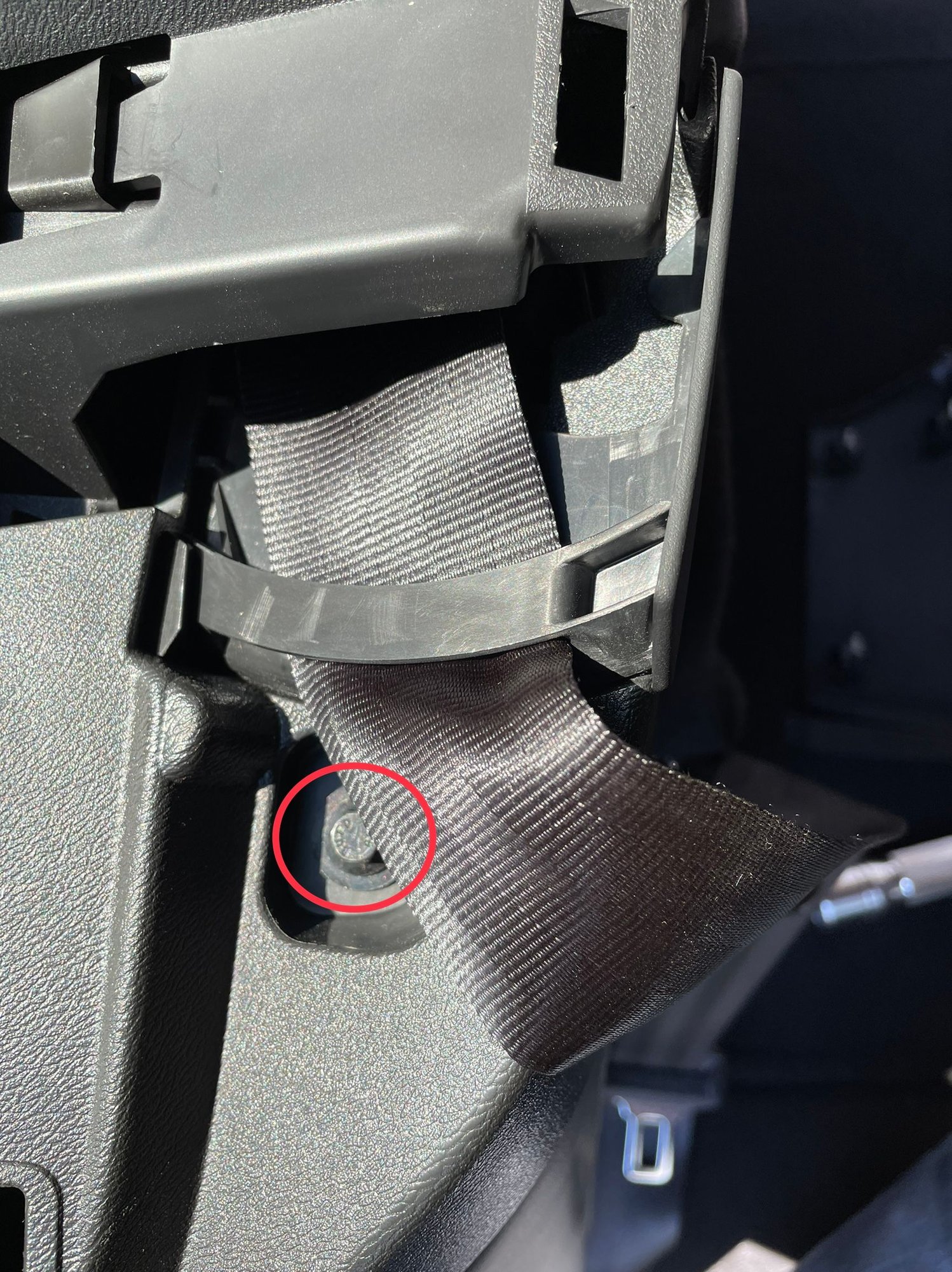 The next part has 3 clips and a bolt which is located under the seatbelt: