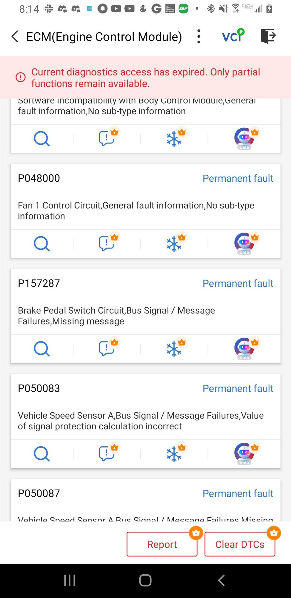 Here is a picture of the codes from my ECU. Seems like there is a lost of signal from my brake pedal switch and Vehicle Speed Sensor A.