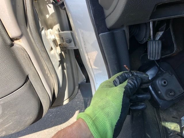 In hindsight I never had to open the door trim. All of the repair was in the little space behind the driver side kick panel. Before and after photos are attached. Hope they help someone.