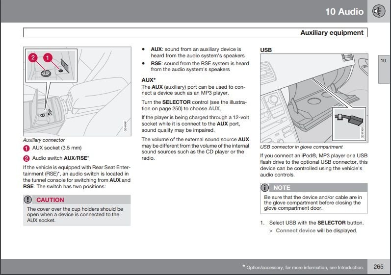 Just bought a 2013 XC 90 R-Design. Would like to use hard wire connection (not Bluetooth) from my phone's Sirius XXM App, to the car radio. Where is the AUX IN jack located? Thanks!