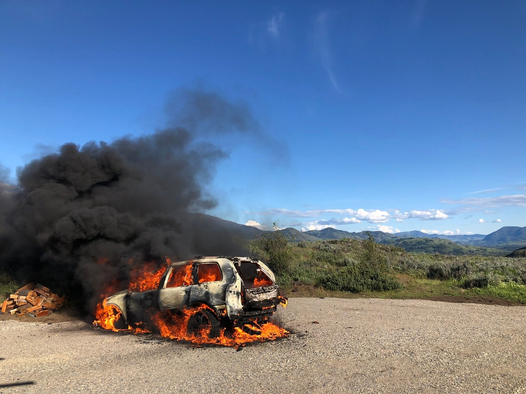 In September 2005 when the car was only 6 months old, my husband was driving home. A series of warning lights came on, there was an electrical smell in the cabin and white smoke coming from under the dashboard. My husband instinctively switched off the engine and got out of the car. Within minutes the car has started itself up, the headrests had gone on fire, and within another few minutes there were 10 foot flames surrounding the car.