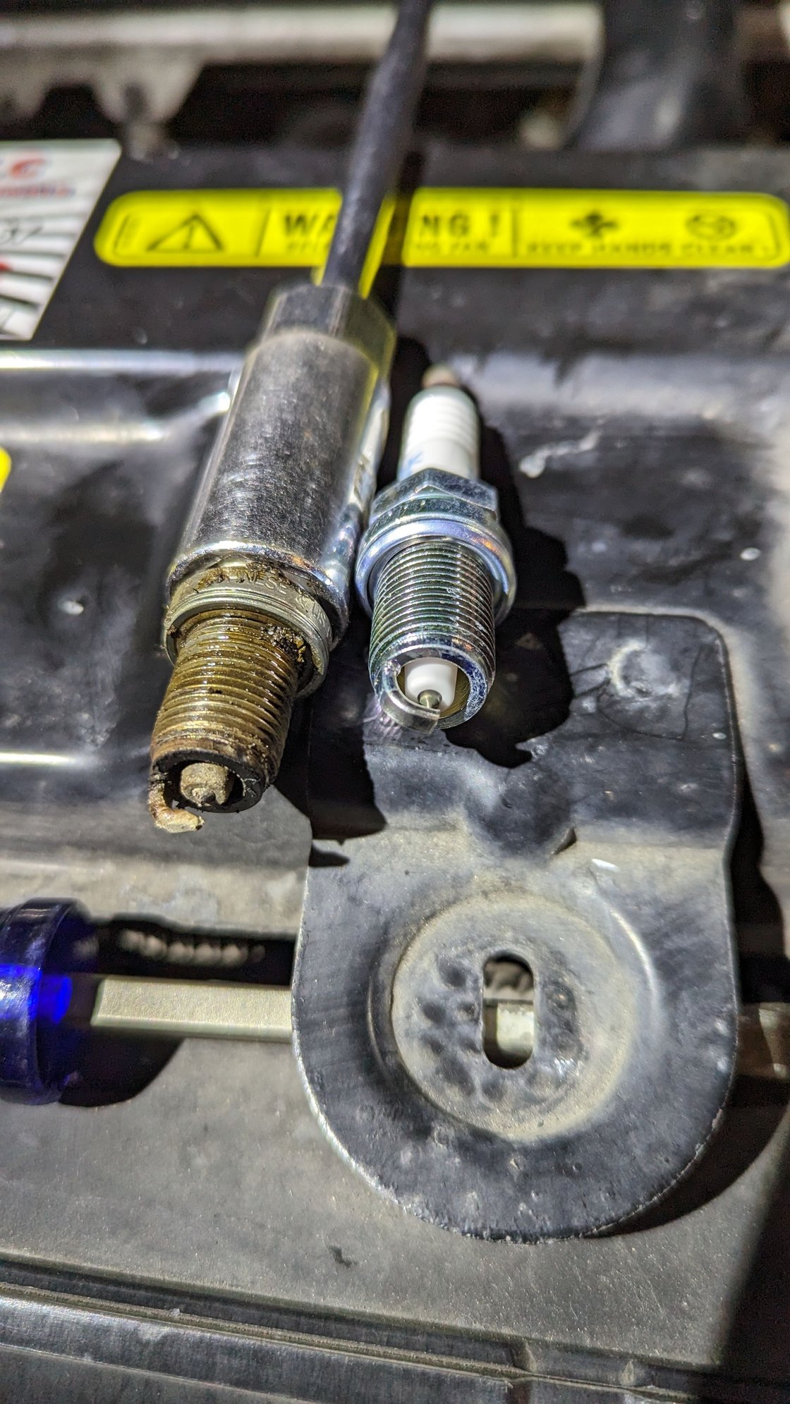 Finally you are at the plugs. They are deep down in the head. A note: Very important that your plug socket is tight on the plug insulator. It needs to grip very well so there are no accidental dropping the plug in the tube. Not a crisis, but hey, why have that problem?